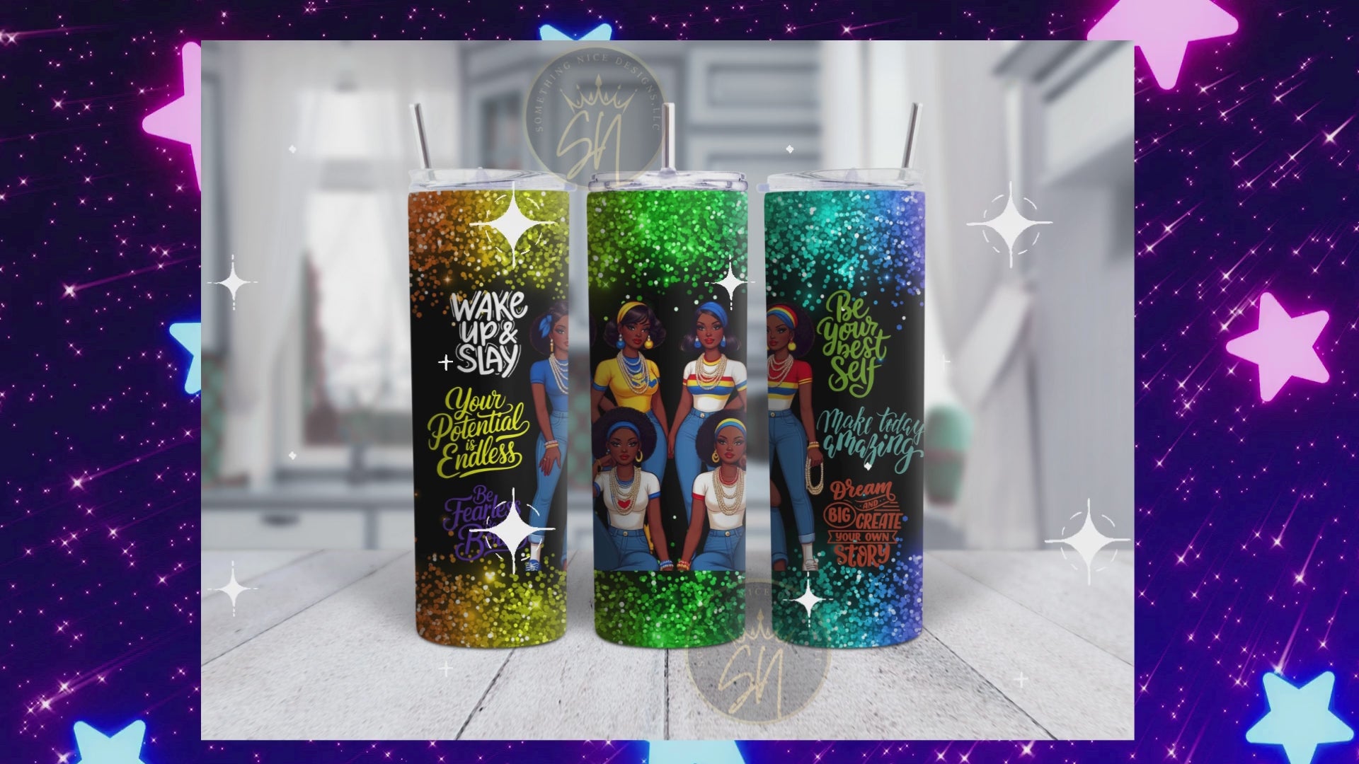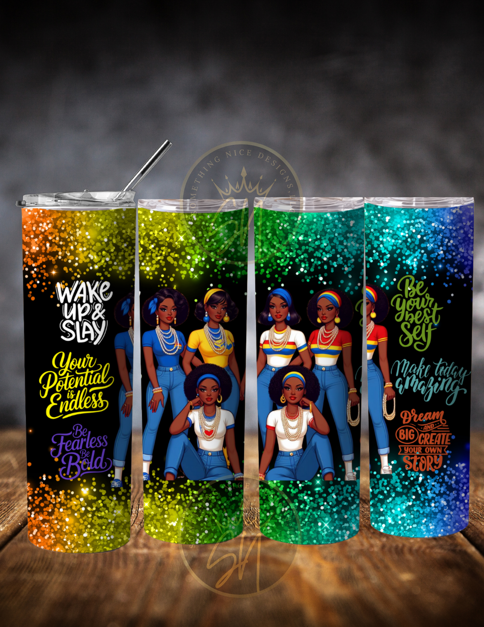 This beautiful tumbler will brighten your day. Twenty ounces of your favorite beverage in this stainless steel tumbler that matches your bubbling and confident personality. This tumbler comes with a metal straw and cleaning brush.